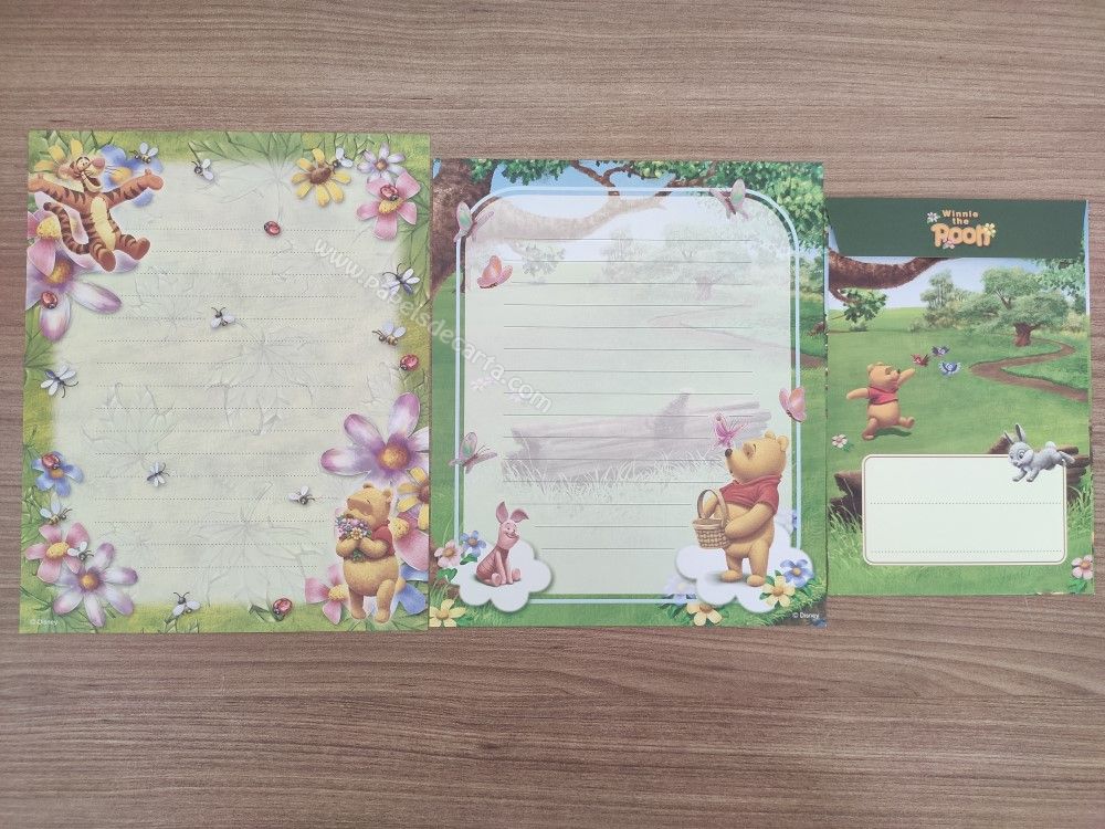 Conjunto importado, de papel de carta do Pooh, tamanho médio, com 2 folhas e 1 envelope, da Disney.