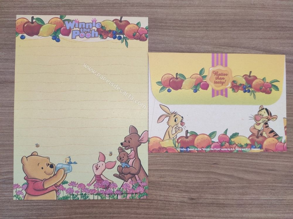 Conjunto importado, de papel de carta do Pooh, tamanho médio, com 1 folha e 1 envelope, da Disney.