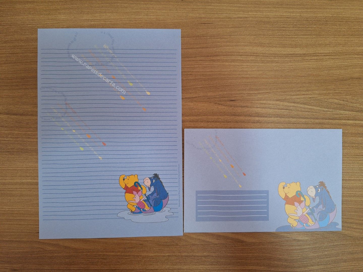 Conjunto com 2 folhas e 1 envelope do Pooh 94