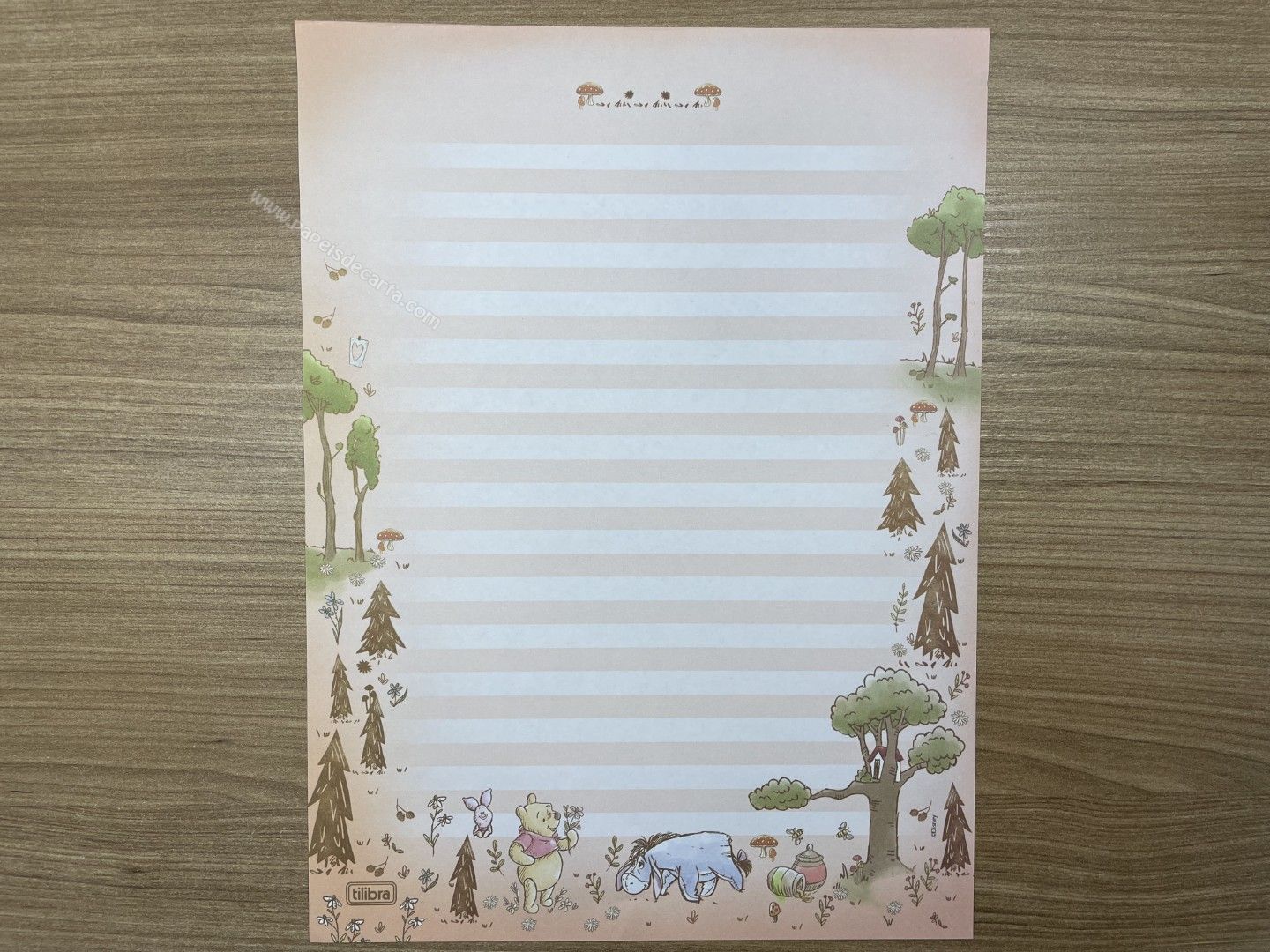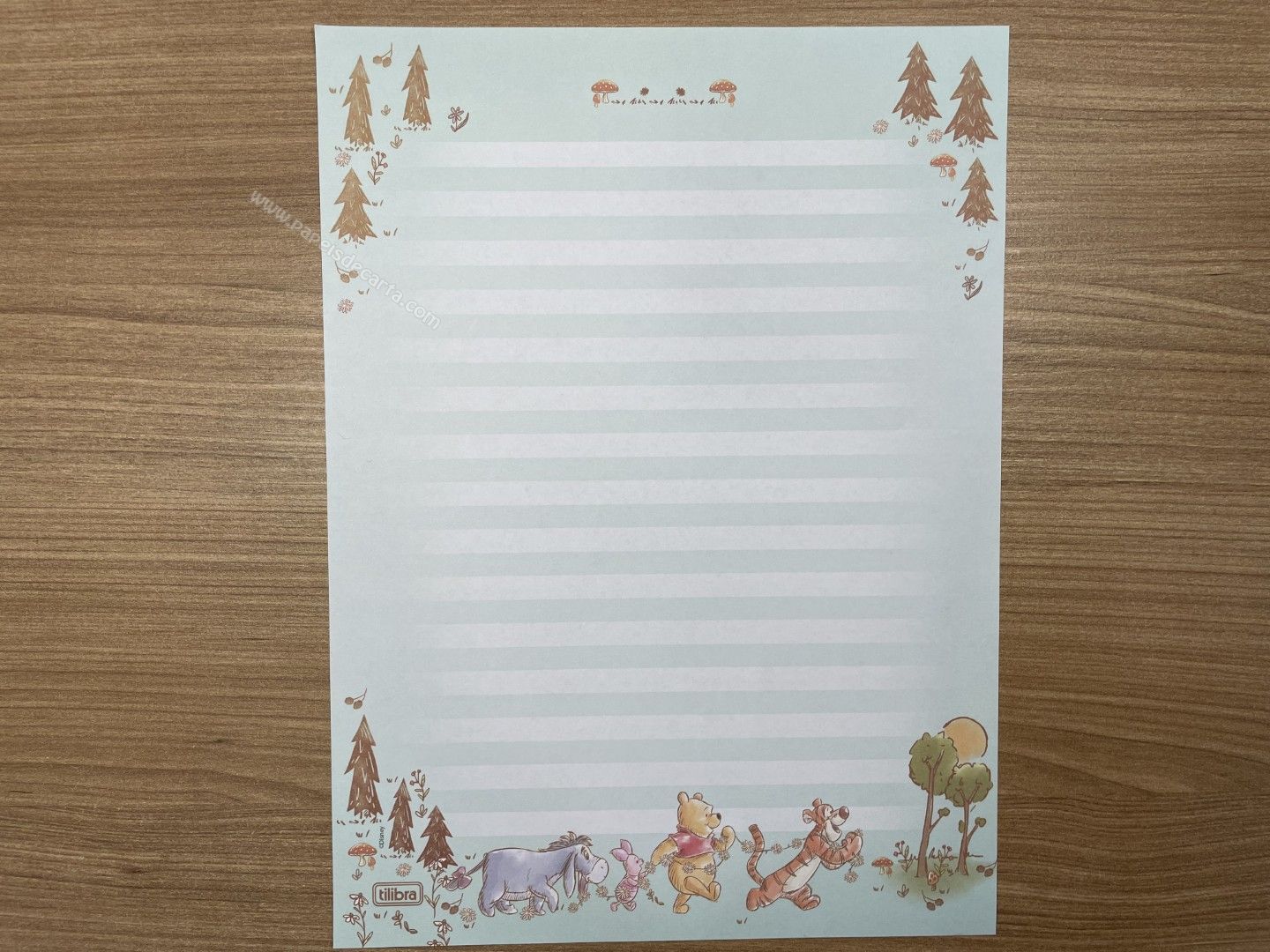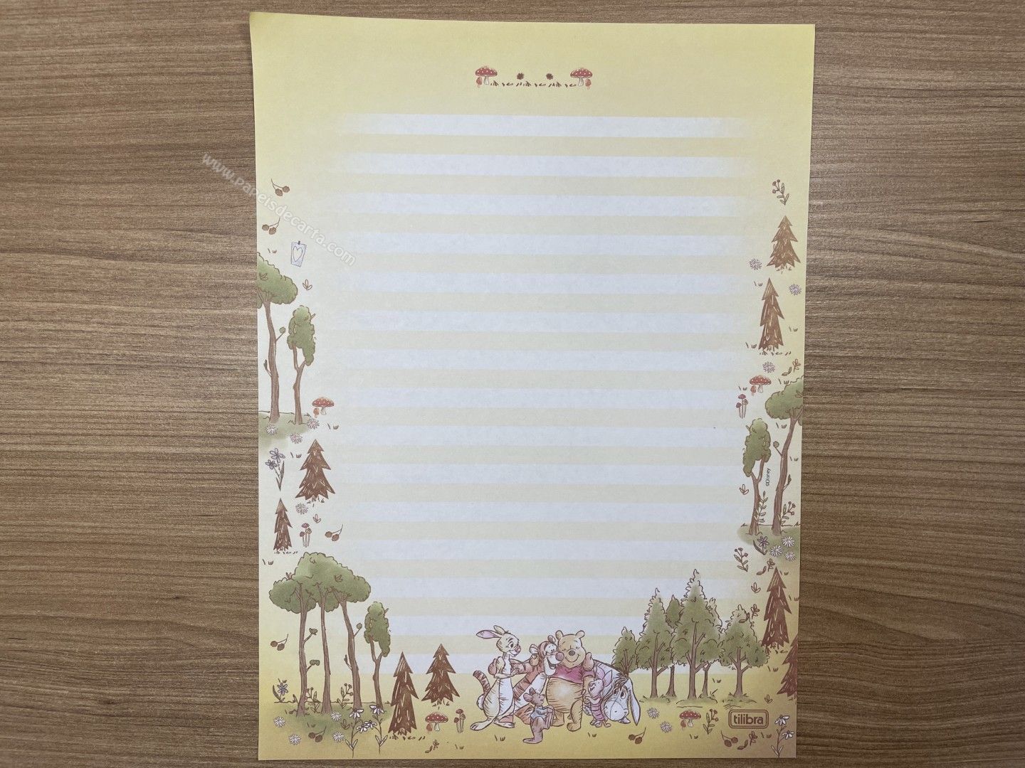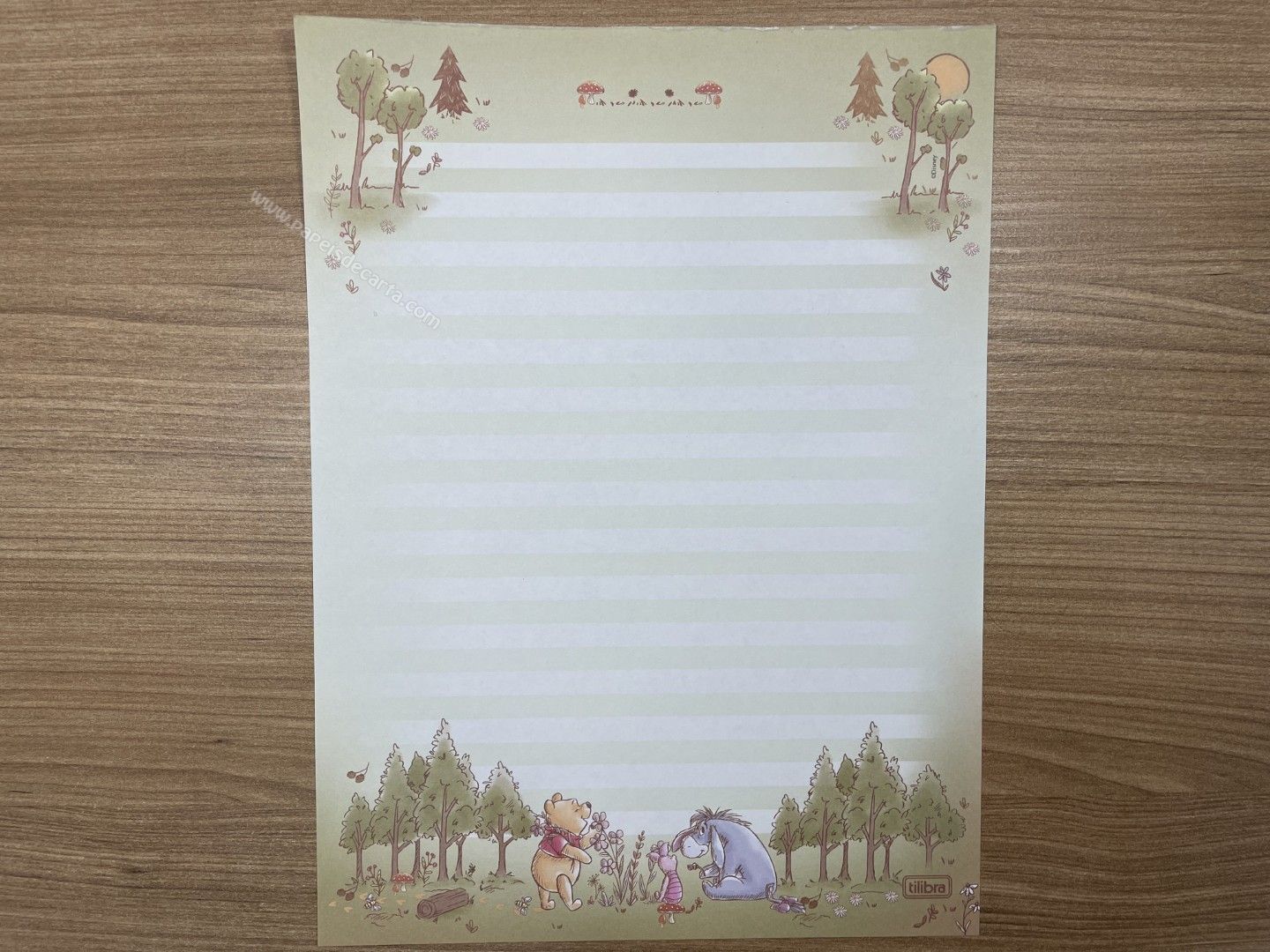 Lote com 4 folhas diferentes de papel de carta do Ursinho Pooh, tamanho médio.