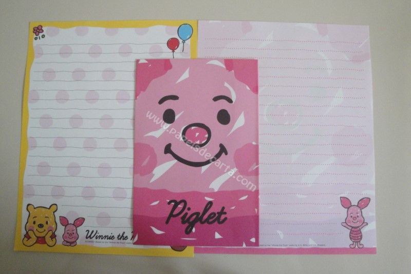 Conjunto importado, de papel de carta com 2 folhas diferentes e 1 envelope do Pooh, com a participação do Piglet (Leitão).