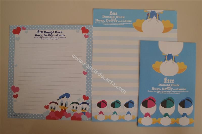 Conjunto importado, de papel de carta com 2 folhas diferentes e 1 envelope do Donald Duck.