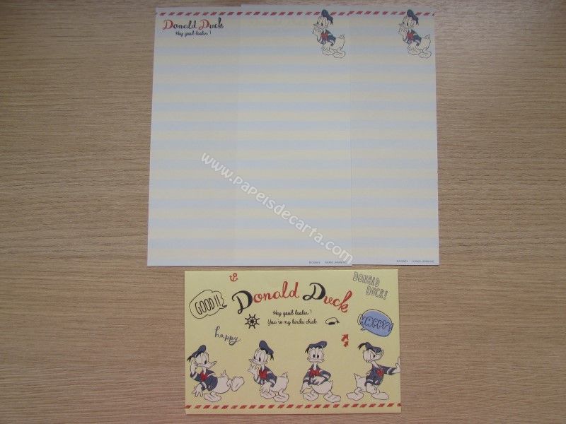 Conjunto importado, de papel de carta do Donald Duck, com 2 folhas iguais e 1 envelope, da Disney.