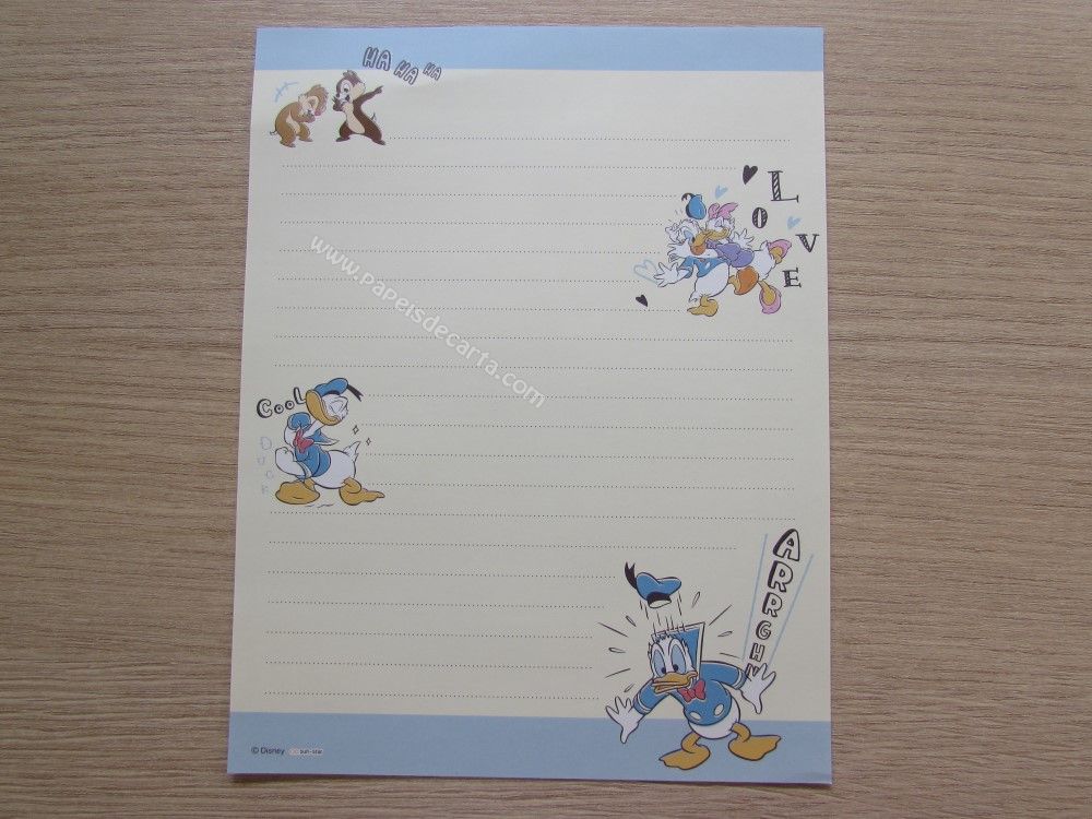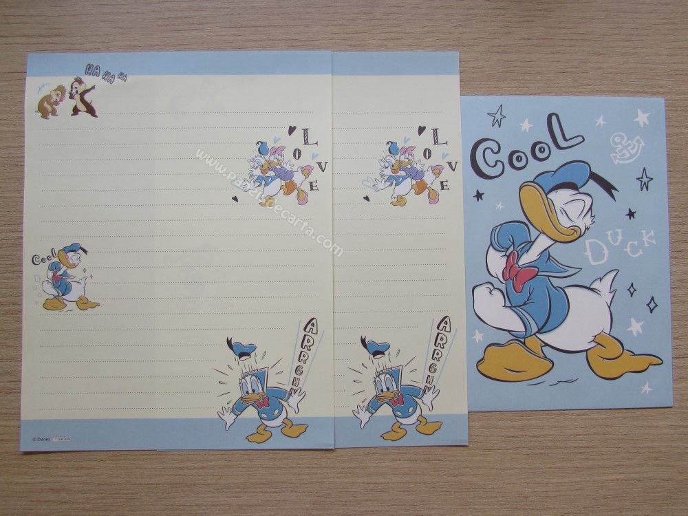 Conjunto importado, de papel de carta do Donald Duck, com 2 folhas iguais e 1 envelope, da Disney.