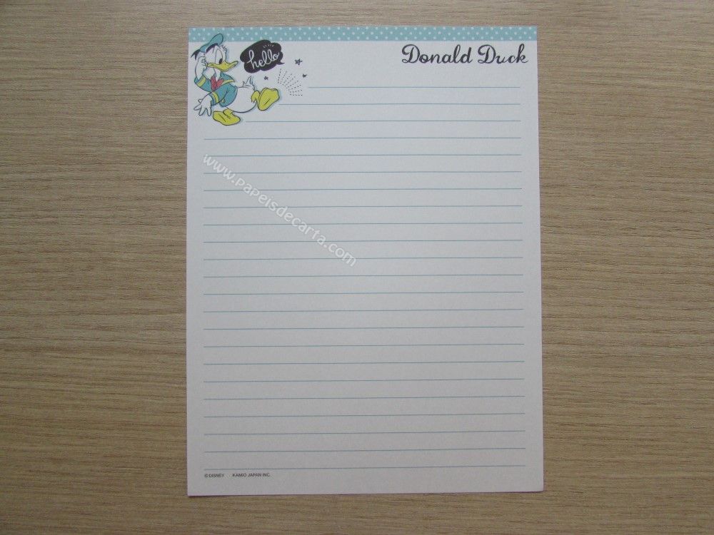Conjunto importado, de papel de carta do Donald Duck, com 2 folhas iguais e 1 envelope, da Disney.