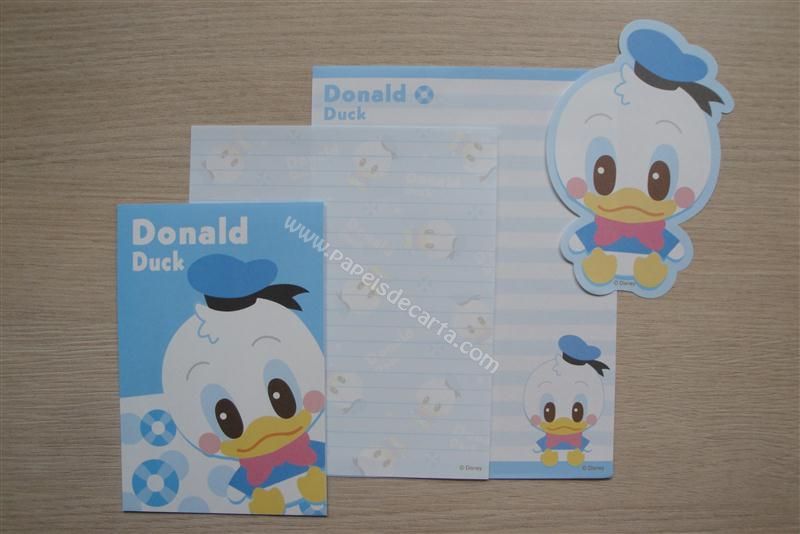 Conjunto importado, de papel de carta com 2 folhas diferentes, 1 notinha e 1 envelope do Donald Duck.