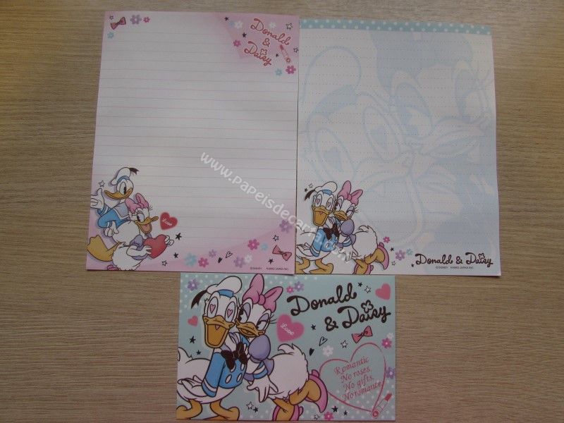 Conjunto importado, de papel de carta do Donald Duck (Pato Donald) e da Miss Daisy (Margarida), com 2 folhas diferentes e 1 envelope, da Disney.