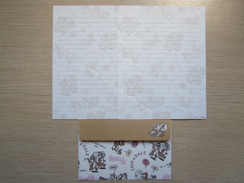 Conjunto importado, de papel de carta do Chip and Dale (Tico e Teco), com 2 folhas iguais e 1 envelope, da Disney.
