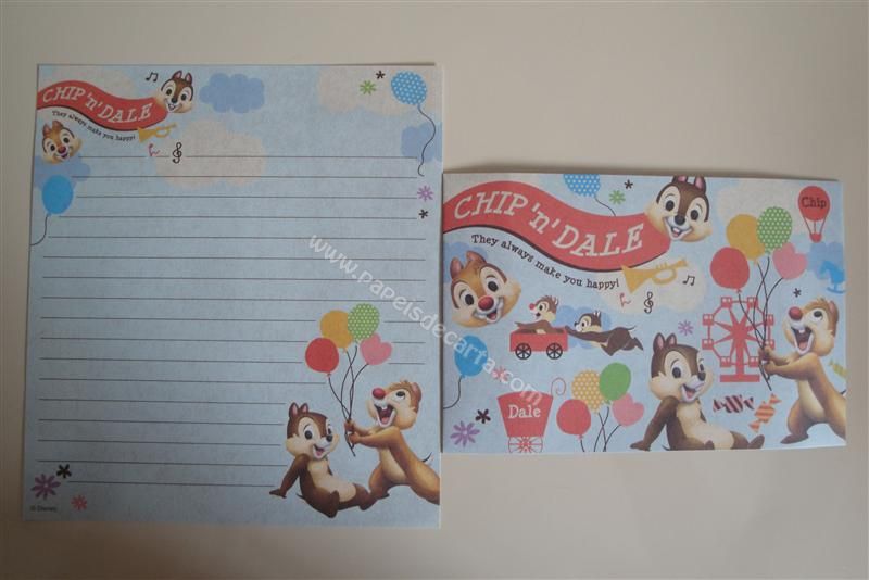 Conjunto importado, de papel de carta com 1 folha e 1 envelope do Chip and Dale.