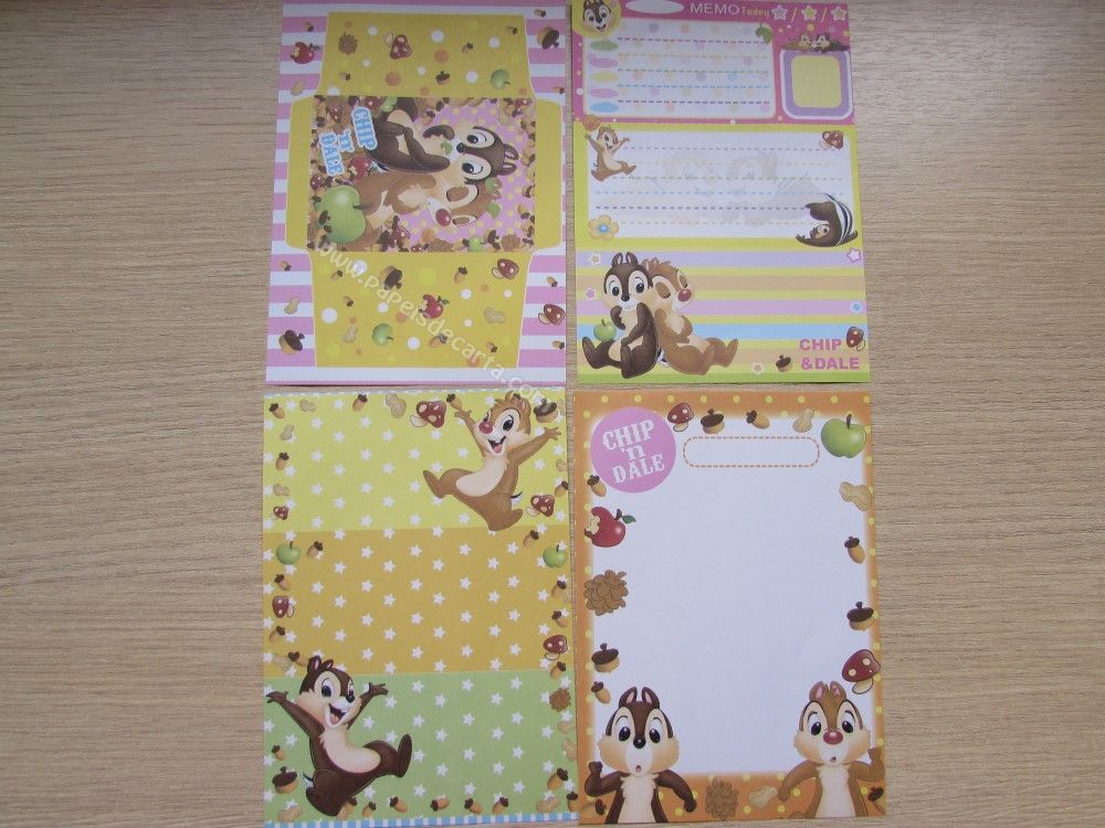 Lote importado, de papel de carta tamanho pequeno com 04 folhas diferentes do Chip & Dale.