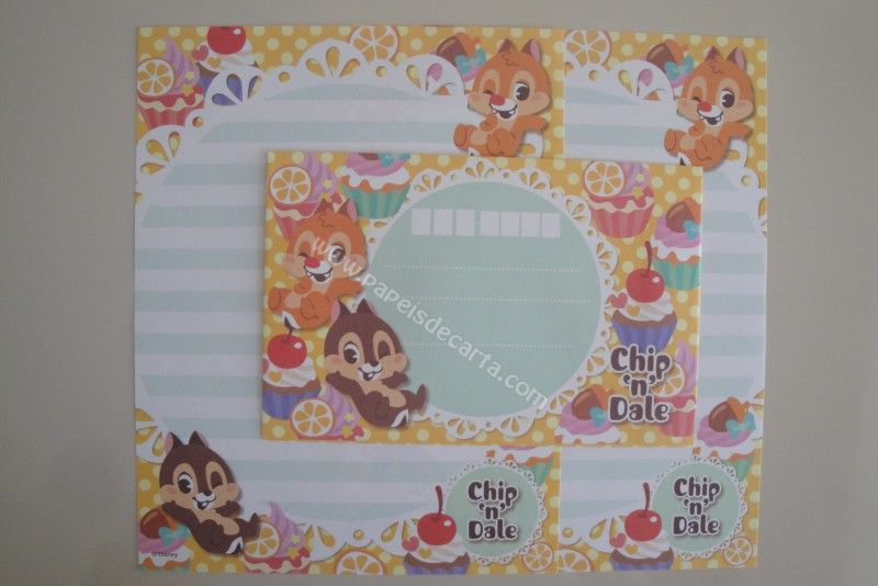 Conjunto importado, de papel de carta com 2 folhas iguais e 1 envelope do Chip and Dale.