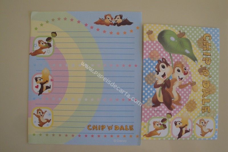 Conjunto importado, de papel de carta com 1 folha e 1 envelope do Chip and Dale.
