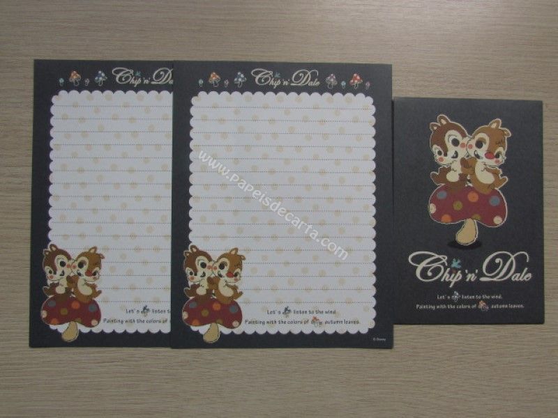 Conjunto importado, de papel de carta do Chip and Dale (Tico e Teco), com 2 folhas iguais e 1 envelope, da Disney. Fabricante: Sun-Star.