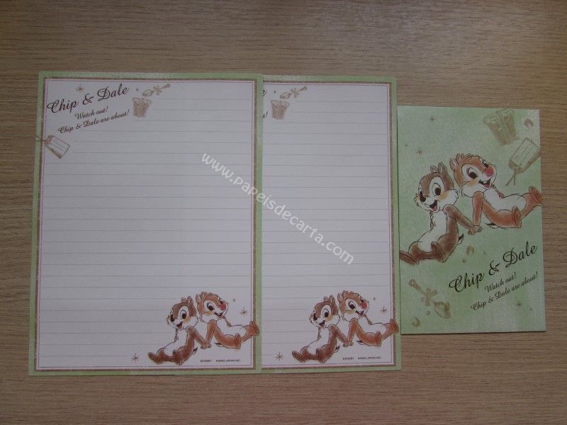 Conjunto importado, de papel de carta do Chip and Dale (Tico e Teco), com 2 folhas iguais e 1 envelope, da Disney.