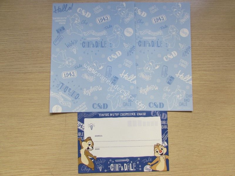 Conjunto importado, de papel de carta com 2 folhas iguais e 1 envelope do Donald Duck e do Chip and Dale.