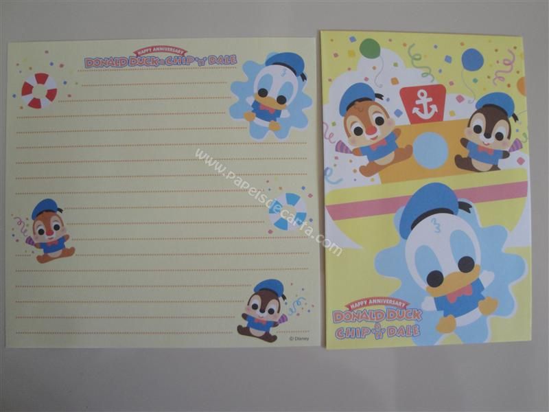 Conjunto importado, de papel de carta com 1 folha e 1 envelope do Donald Duck e do Chip and Dale.