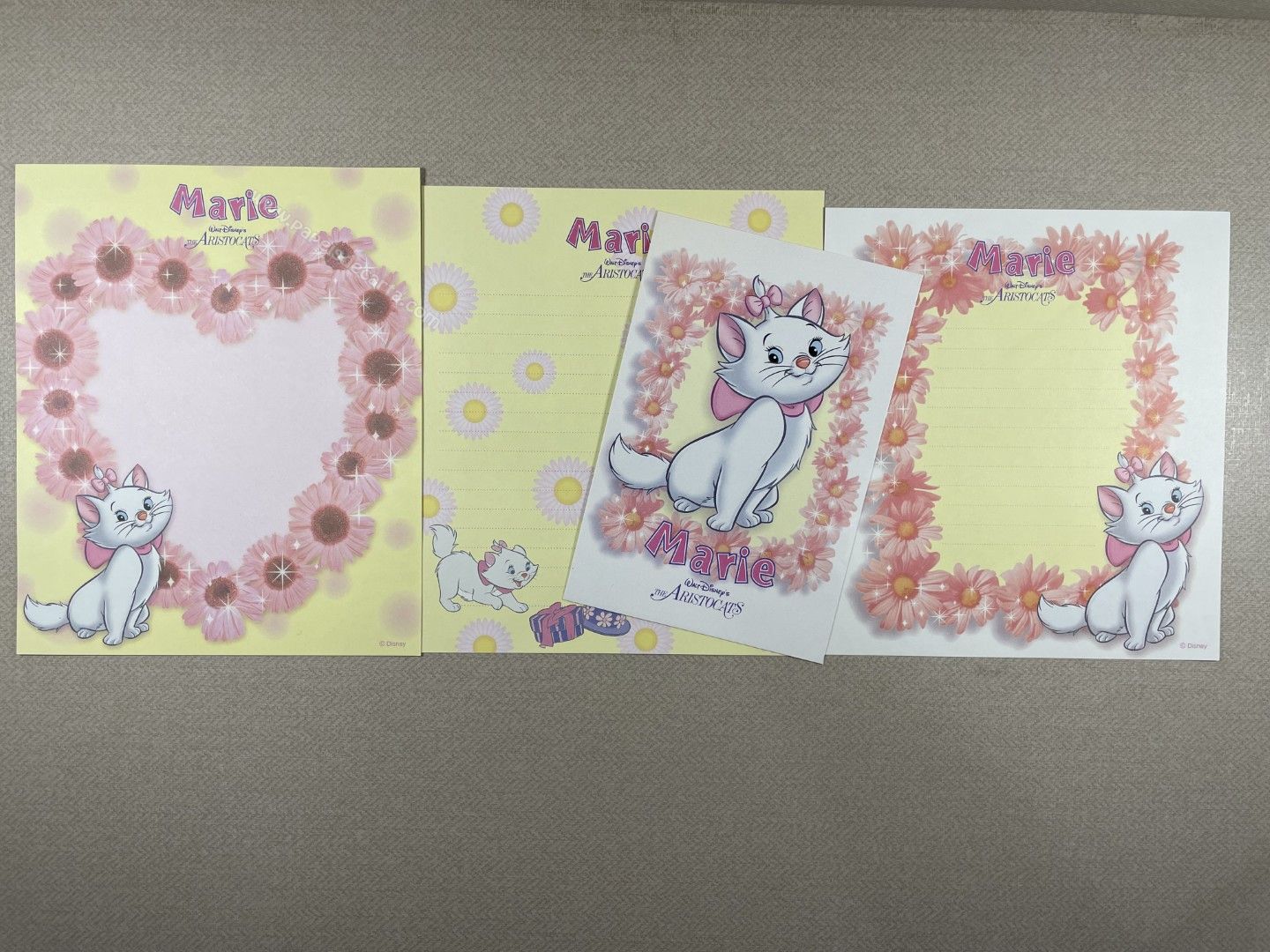 Conjunto importado, de papel de carta da The Aristocats (Marie), com 3 folhas diferentes e 1 envelope, tamanho médio, da Disney.