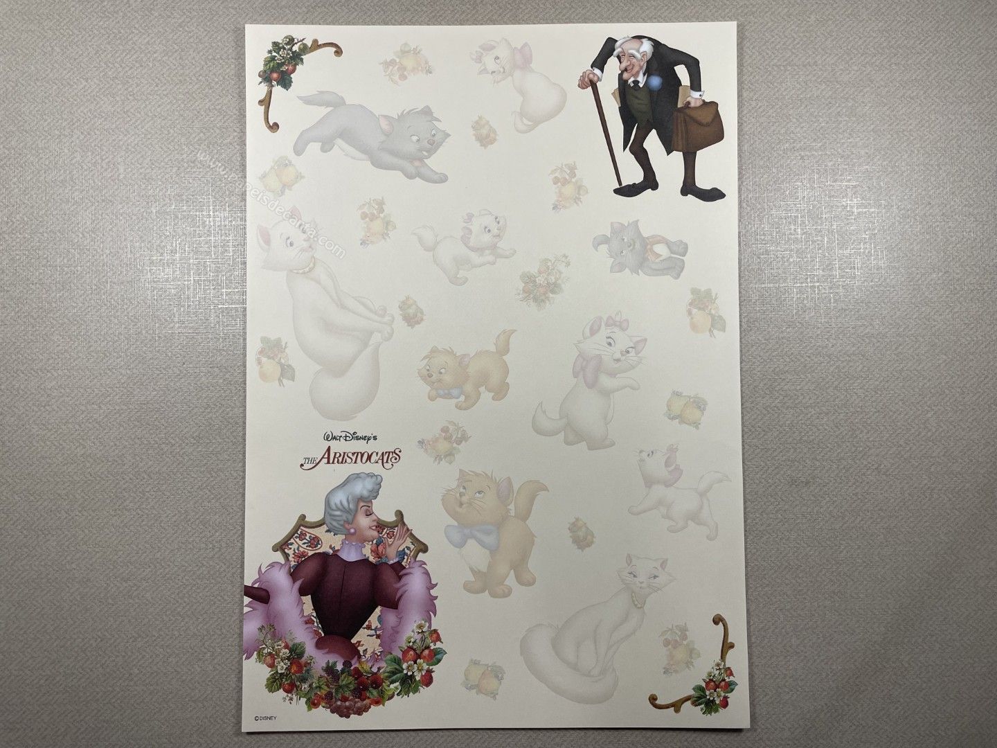 Papel de carta da The Aristocats (Marie), com 1 folha grande (21cm larg X 30cm alt) da Disney.