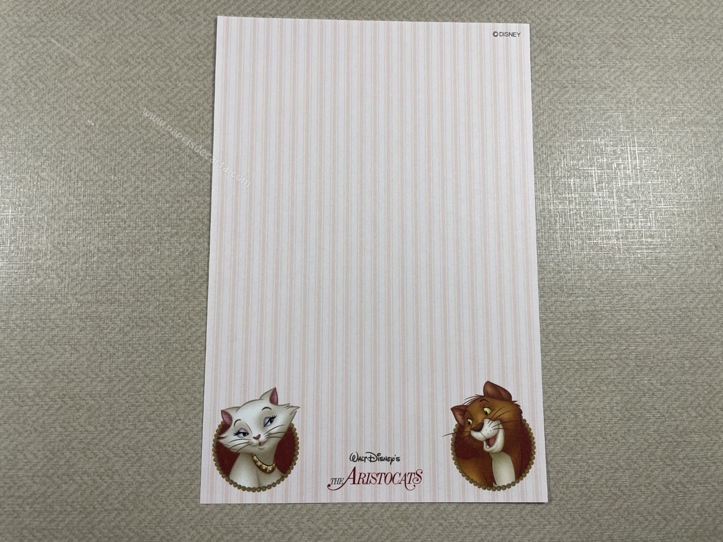 Papel de carta da The Aristocats (Marie), com 1 folha pequena (10cm larg X 15cm alt) da Disney.