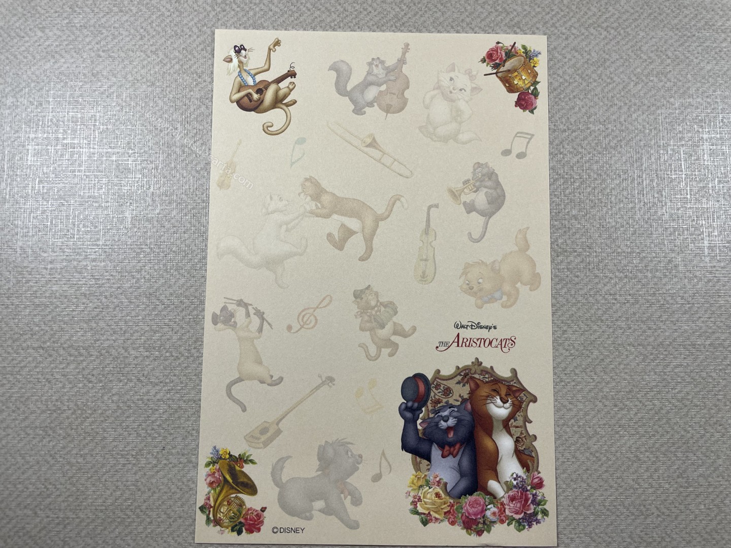 Papel de carta da The Aristocats (Marie), com 1 folha pequena (12cm larg X 17cm alt) da Disney.