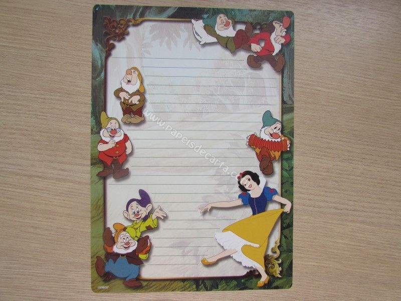 Papel de carta importado, tamanho grande, da princesa Branca de Neve.
