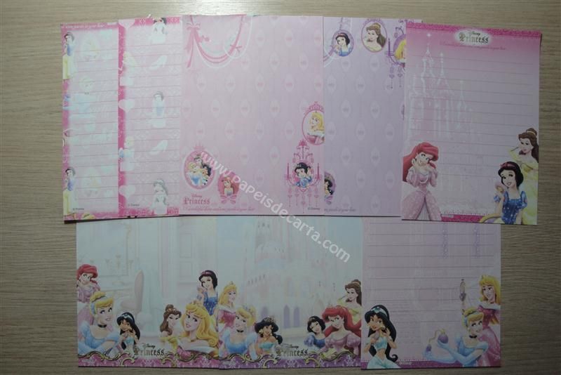 Conjunto importado, de papel de carta com 8 notinhas diferentes da Disney Princess.