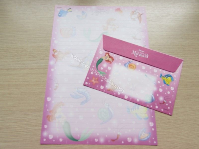 Conjunto importado, de papel de carta da Disney Princess - Ariel - The Little Mermaid, com 1 folha e 1 envelope, da Disney, tamanho um pouco maior que o médio.