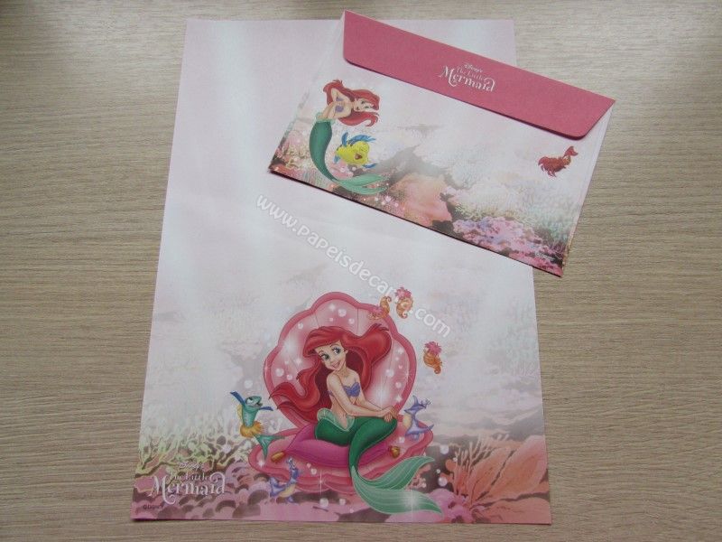 Conjunto importado, de papel de carta da Disney Princess - Ariel - The Little Mermaid, com 1 folha e 1 envelope, da Disney, tamanho um pouco maior que o médio.