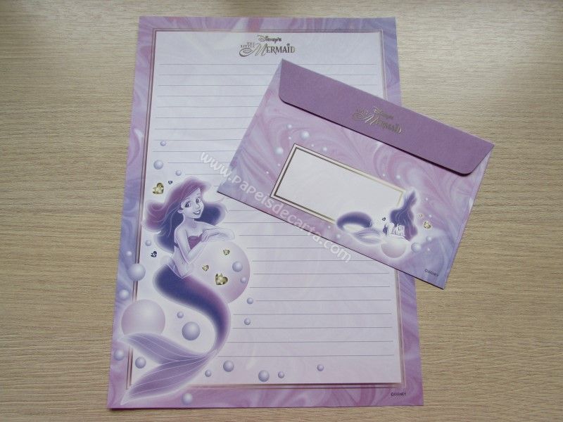 Conjunto importado, de papel de carta da Disney Princess - Ariel - The Little Mermaid, com 1 folha e 1 envelope, da Disney, tamanho um pouco maior que o médio.