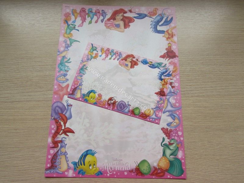 Conjunto importado, de papel de carta da Disney Princess - Ariel - The Little Mermaid, com 1 folha e 1 envelope, da Disney, tamanho grande.