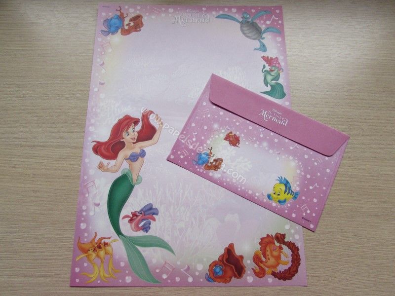 Conjunto importado, de papel de carta da Disney Princess - Ariel - The Little Mermaid, com 1 folha e 1 envelope, da Disney, tamanho grande.
