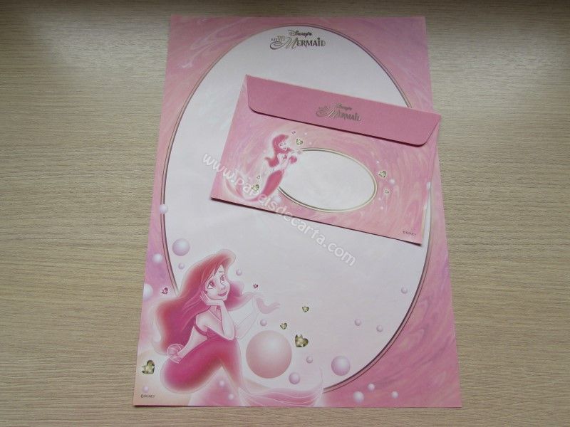 Conjunto importado, de papel de carta da Disney Princess - Ariel - The Little Mermaid, com 1 folha e 1 envelope, da Disney, tamanho grande.