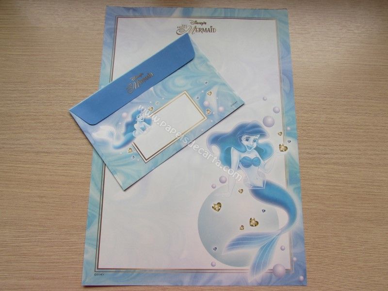 Conjunto importado, de papel de carta da Disney Princess - Ariel - The Little Mermaid, com 1 folha e 1 envelope, da Disney, tamanho grande.