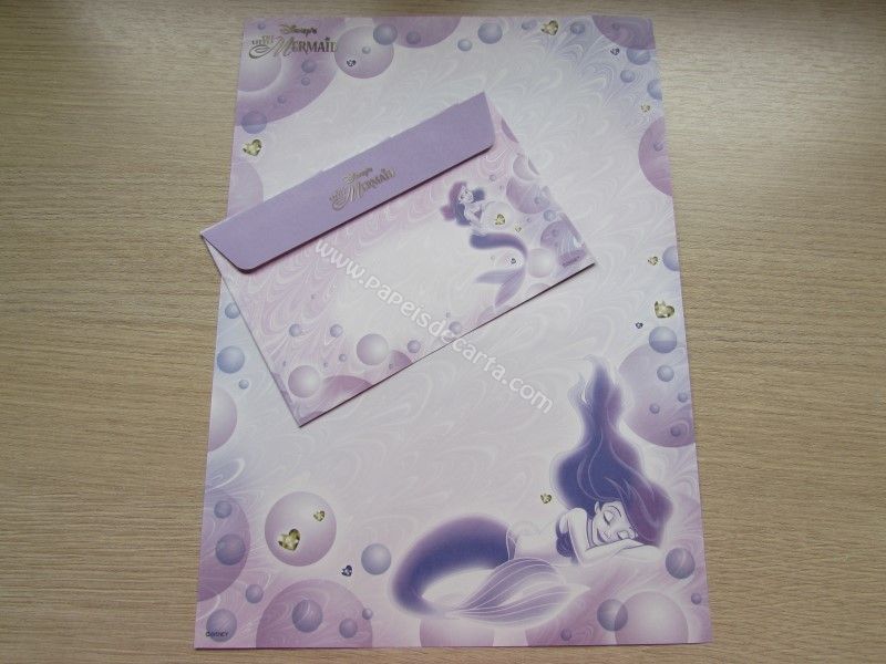 Conjunto importado, de papel de carta da Disney Princess - Ariel - The Little Mermaid, com 1 folha e 1 envelope, da Disney, tamanho grande.