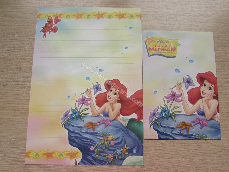 Conjunto importado, de papel de carta da Disney Princess - Ariel - The Little Mermaid, com 1 folha e 1 envelope, da Disney, tamanho médio.
