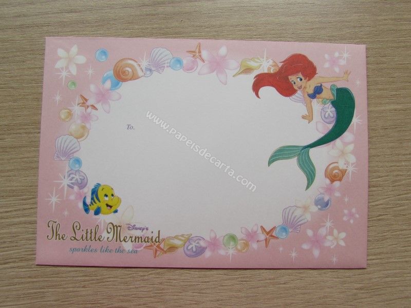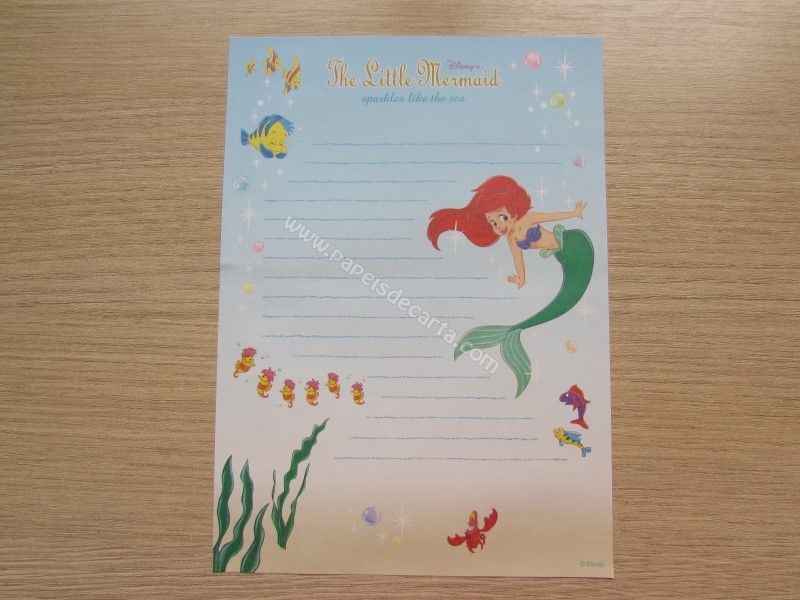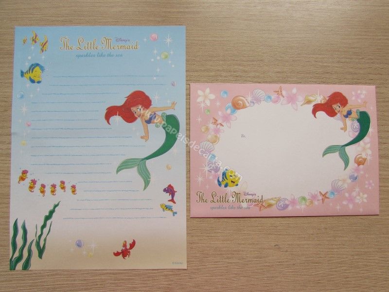 Conjunto importado, de papel de carta da Disney Princess - Ariel - The Little Mermaid, com 1 folha e 1 envelope, da Disney, tamanho médio.
