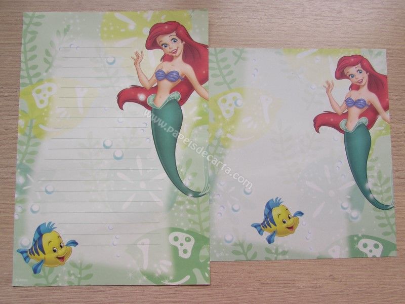 Lote de papel de carta importado com 2 folhas da Ariel - The little Mermaid, tamanho médio.