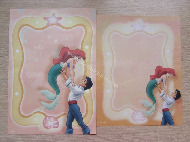 Lote de papel de carta importado com 2 folhas da Ariel - The little Mermaid, tamanho médio.