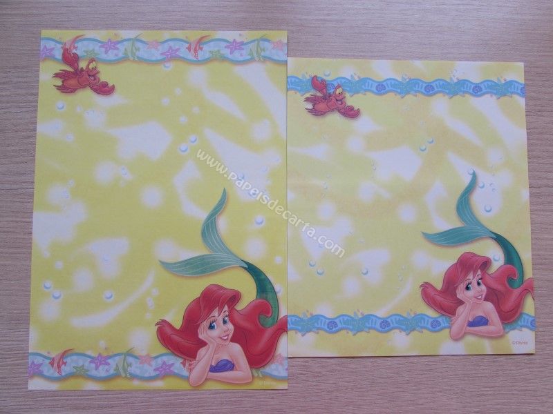 Lote de papel de carta importado com 2 folhas da Ariel - The little Mermaid, tamanho médio.