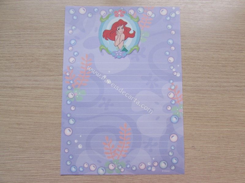 Papel de carta importado da Ariel - The Little Mermaid, tamanho médio.
