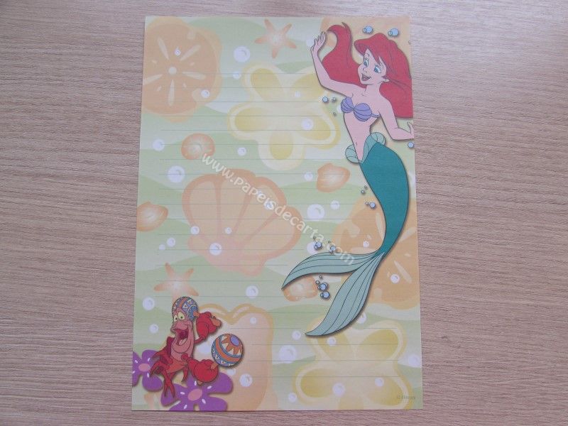 Papel de carta importado da Ariel - The Little Mermaid, tamanho médio.