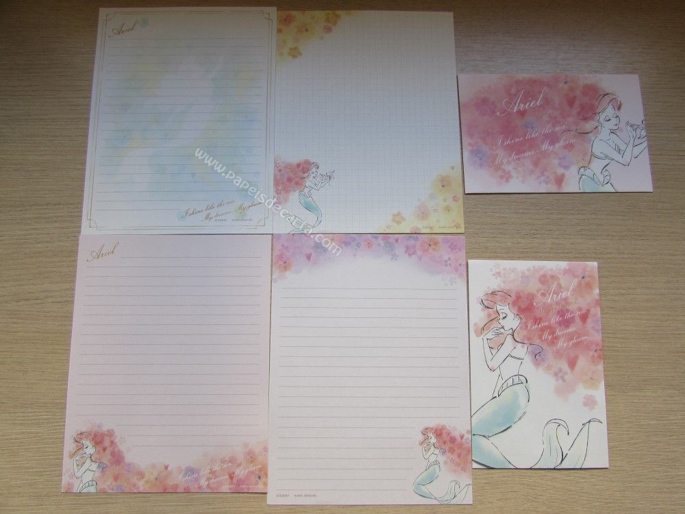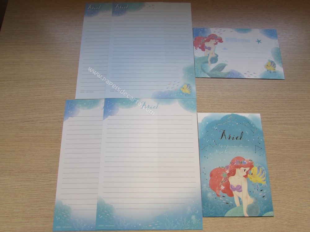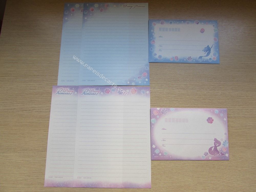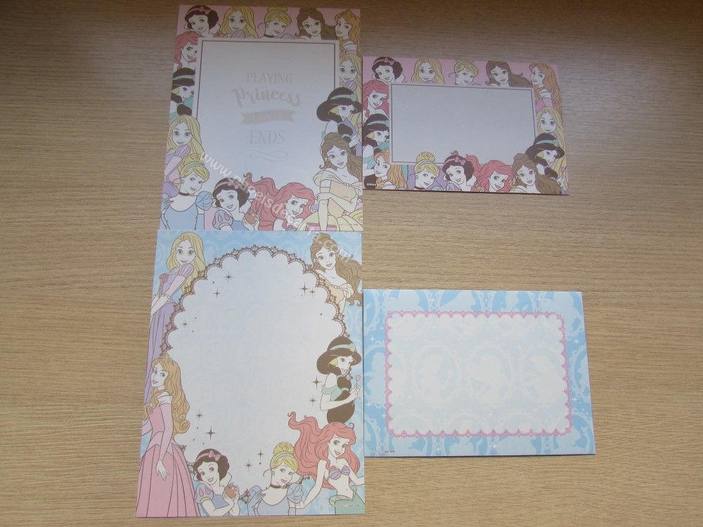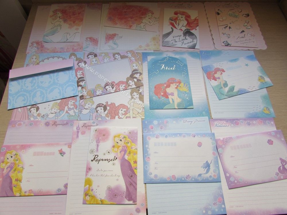 Lote de papel de carta importado com 12 conjuntos diferentes, sendo 2 folhas e 1 envelope cada conjunto das Princesas. 2 conjuntos são com 1 folha e 1 envelope cada.