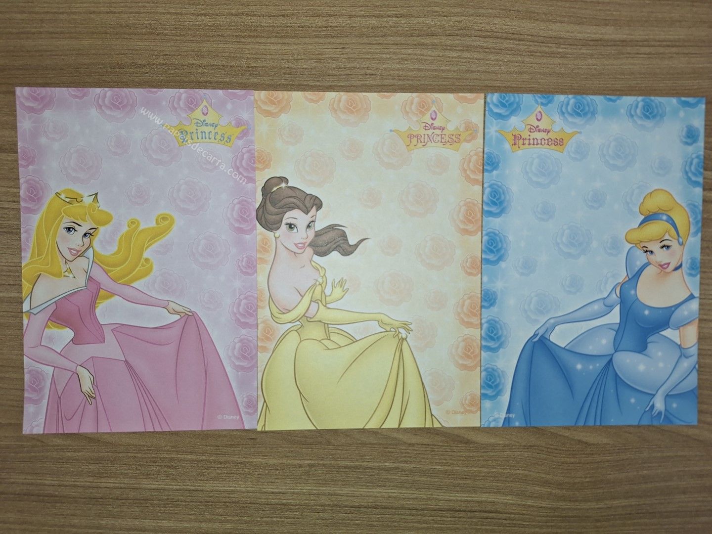 Lote de papel de carta pequeno, com 3 papéis diferentes da Disney Princess