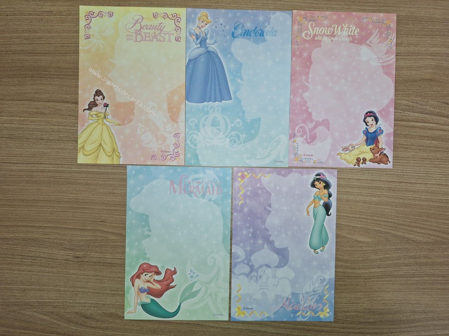 Lote de papel de carta pequeno, com 5 papéis diferentes da Disney Princess