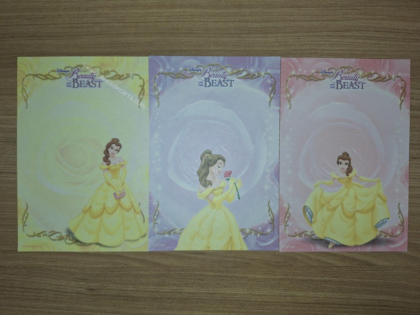 Lote de papel de carta pequeno, com 3 papéis diferentes da Disney Princess.