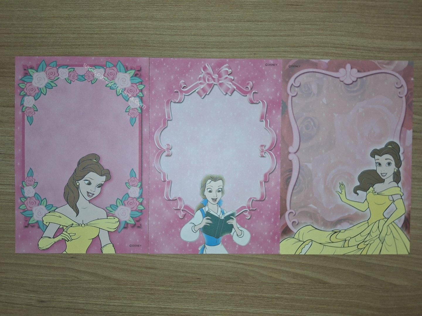 Lote de papel de carta pequeno, com 3 papéis diferentes da Disney Princess.