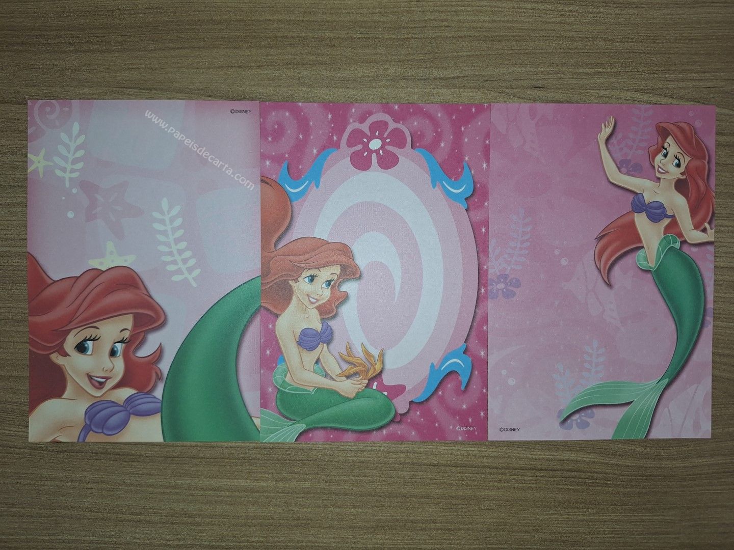 Lote de papel de carta pequeno, com 3 papéis diferentes da Disney Princess.