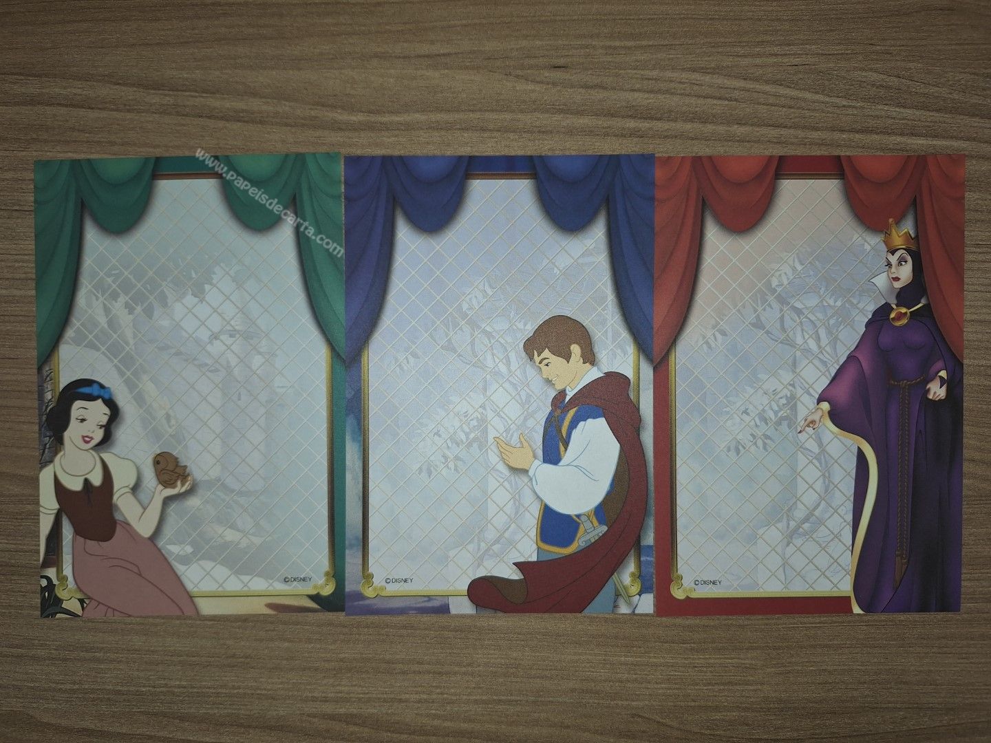 Lote de papel de carta pequeno, com 3 papéis diferentes da Disney Princess.