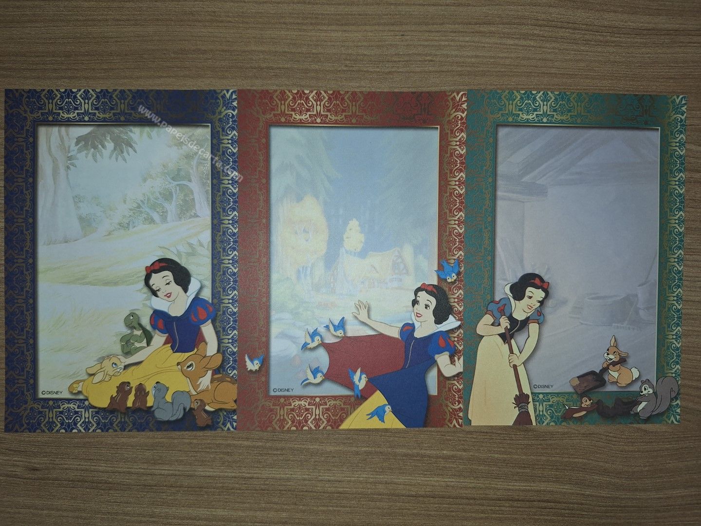 Lote de papel de carta pequeno, com 3 papéis diferentes da Disney Princess.