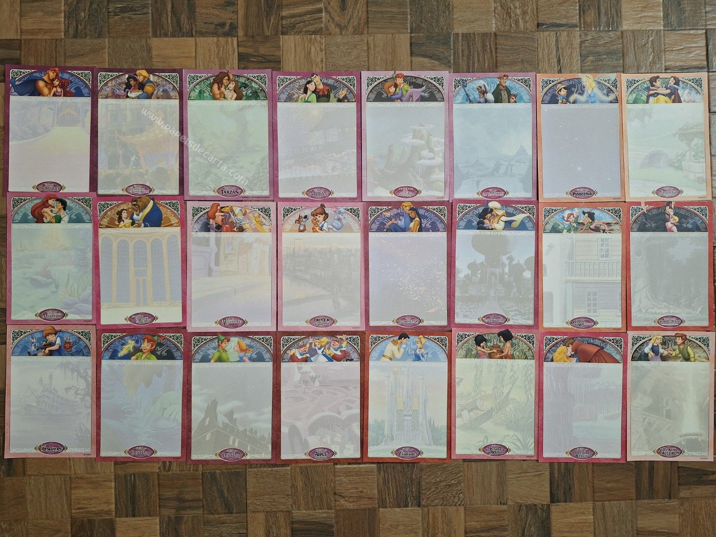 Lote de papel de carta pequeno, com 24 papéis diferentes da Disney Princess.